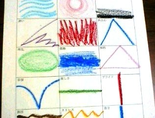 まずは、感情カードに思うまま、思いついた色と形を表現します。