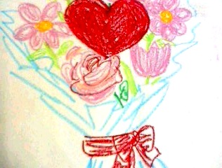 私は「自分へのプレゼント」を描きました。ピンクの花の真ん中にあるハートがですね、自分への愛情を表現しています。”私に愛情をプレゼント”というわけです。かわいらしい絵でしょ?(自分で言ってしまった)
